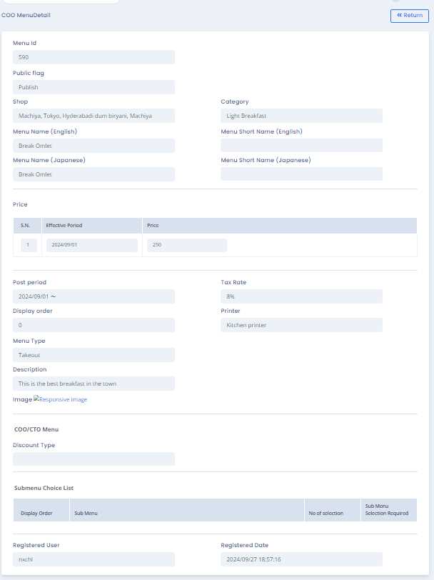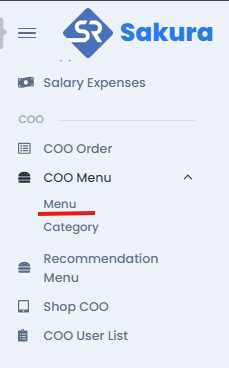 You will find Menu at left side in COO Menu tab in COO section. Click on Menu, then you will find the COO menu list with registered COO menu with their information.