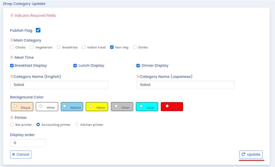 By entering the required field you simply can Click the Update button in category update form to update the shop category. By this process/ procedure you can perform simple update of a Shop category in the POS system.