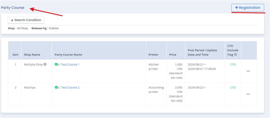 Click on Party Course and you find the Party course Tab, go through the party course tab, and click on party course, then you will find the party List with registered party course with their information, where you will find the Registration button on the top right.