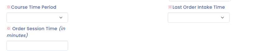 Last Order Intake time : This dropdown sets the time whether the customer can order before closing the party course. For e.g. : If the course time is 1 hour and last order intake time is 15 min then the customer can only order at 45 min and cannot take any order after 45 mins.
