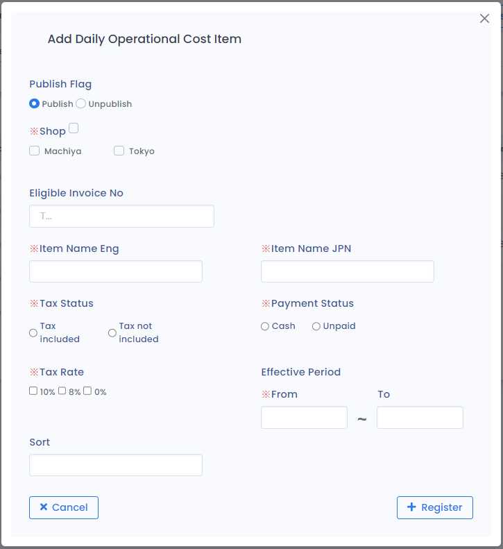 · Unpublish: Item is ineligible to be used while expenses are being registered