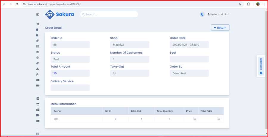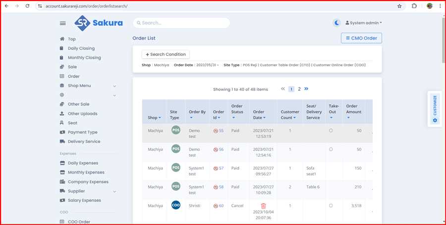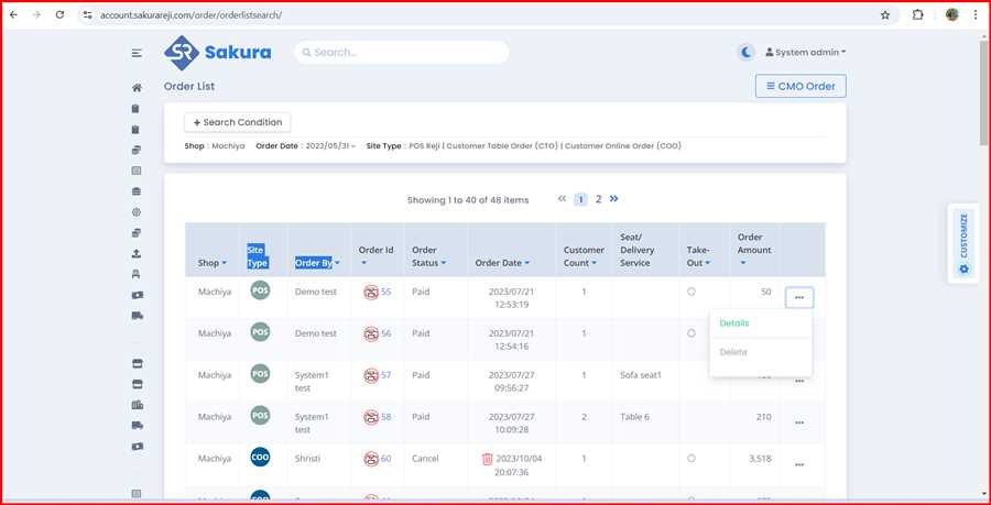 Click on the Order Id to see the details of each order. Or you can use 'Details' Button by clicking the last three dot.