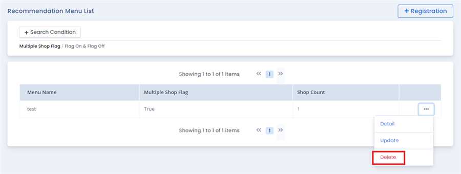 User can press Delete button after pressing ... tab of the respective menu in recommendation menu list.