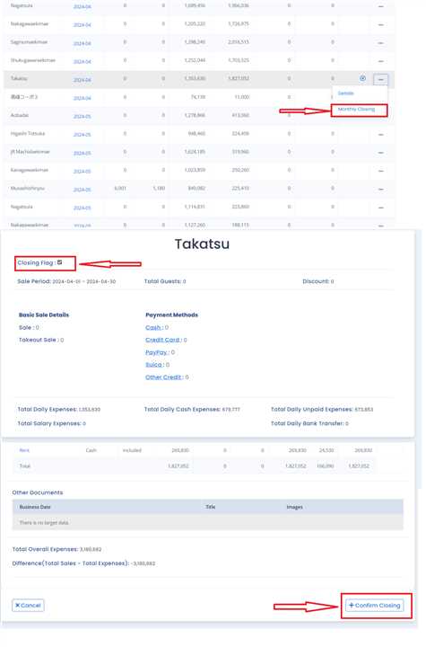 If the closing status of the particular row has a Red cross, Login through Company Manager account, go to Monthly closing page and click on Monthly closing button as shown in the image. After that, Untick the Closing Flag Checkbox at the top of the page and Click 'Confirm Closing' Button at the bottom right corner. This Should Undo the Closing and Enable the Update button. Now you can update the data as usual.