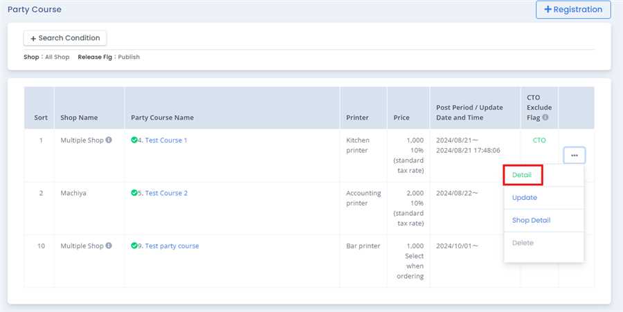 User can press Detail button after pressing ... tab of the respective party course in Party Course List.
