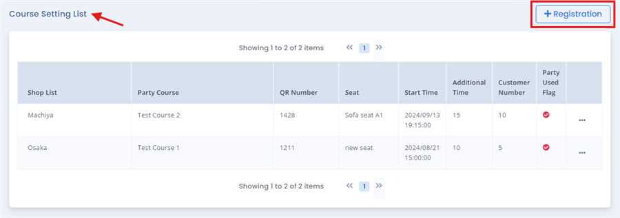 Note: Only registered party course with seat and qr number is shown up for their respective shop