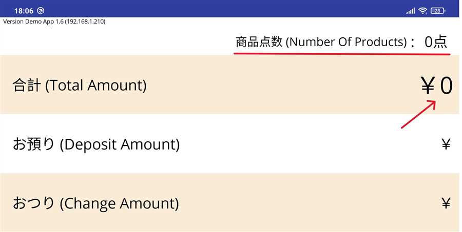 After both the devices are connected, you will be able to see information like Number of products and Total Amount is set 0 in the device with customer device terminal. The IP address is now not shown in top middle part of the screen after successful connection in the customer display as it was before connection.