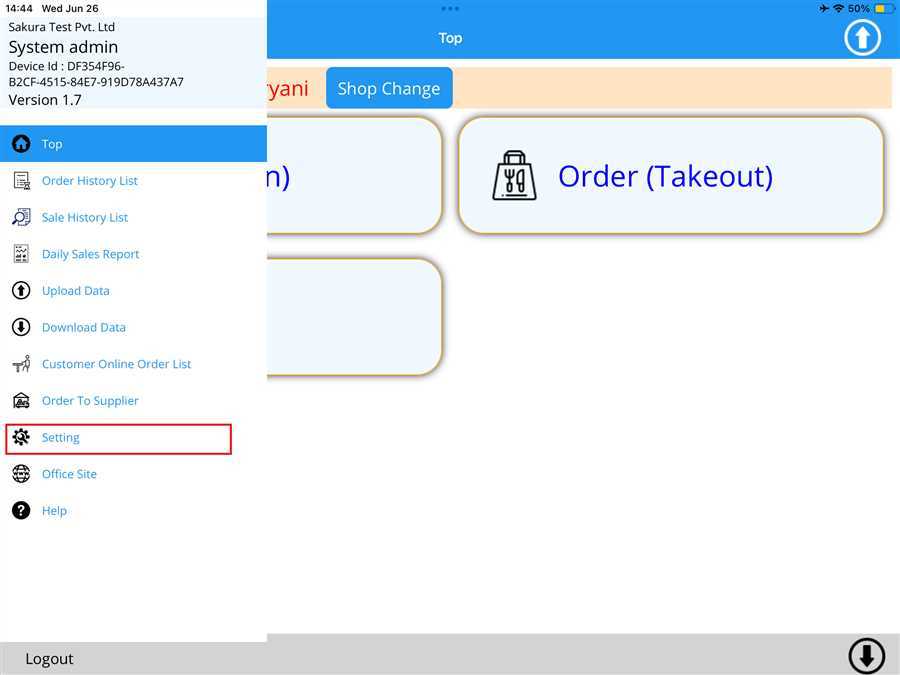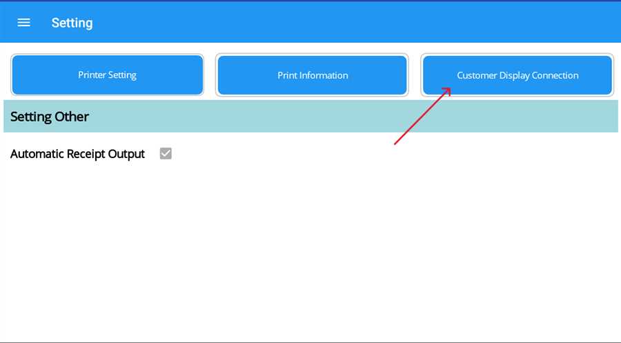 On tapping on the Setting on side bar, the setting appears as shown in image attached below. Now, tap on Customer Display Connection button.