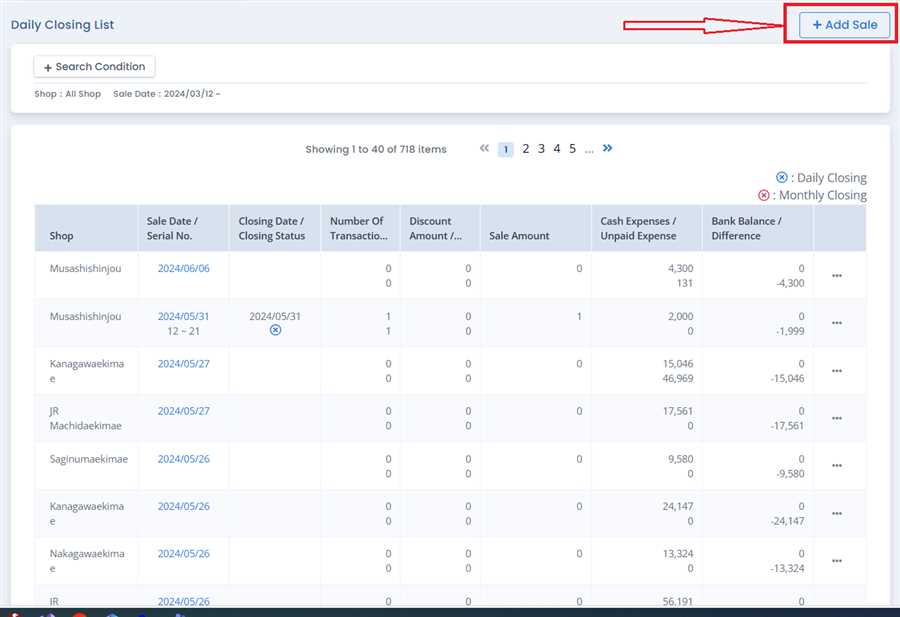 Click on add sale button on top right corner od daily closing page. A list of shops that not use POS appears.