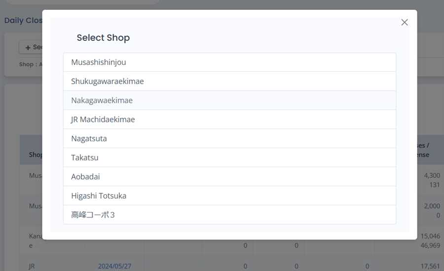Click on your desired shop from the list. A form including different fields related to closing appears.