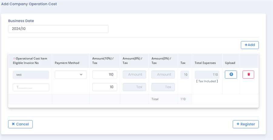 User can increse the tab by pressing "Add" button if user wants to add multiple records.