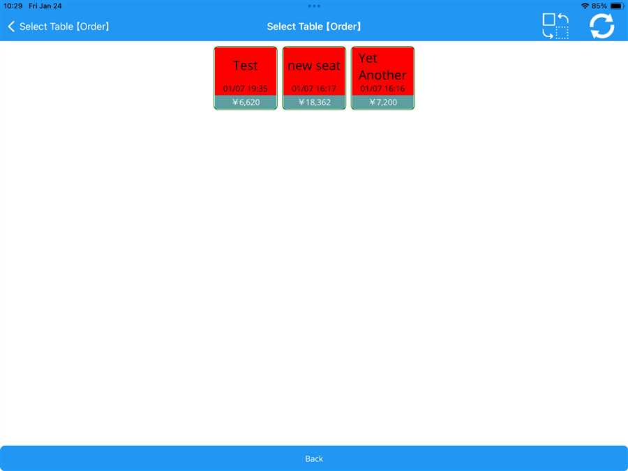 After pressing the Order (Eatin) button a list button appears which contains the tables registered on the shop with respective order value on those seat.