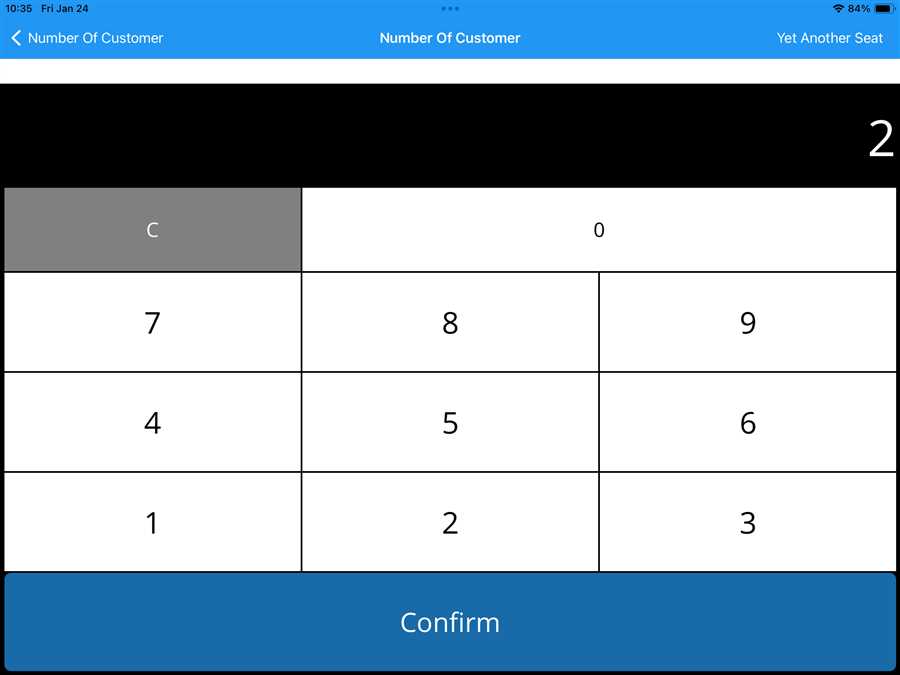 After pressing a table a page opens up which allows the user to enter the number of customers.