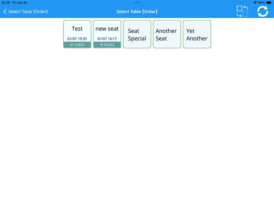 After pressing the Order(EatIn) button a list button appears which contains the tables registered on the shop with respective order value(total ordered menu price) on those tables.