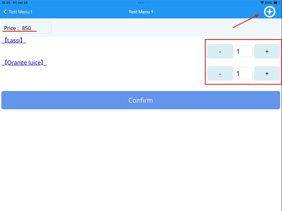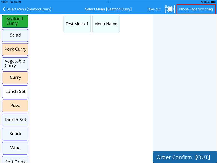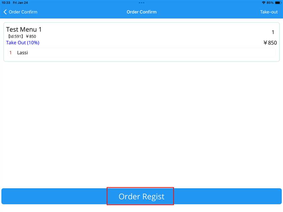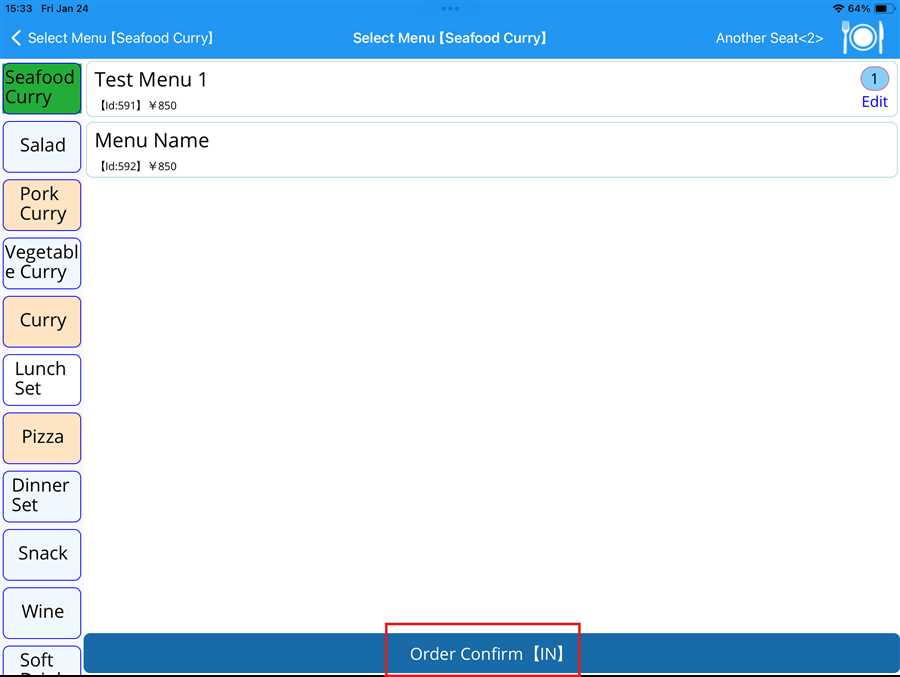 After confirming the order user can press Order Confirm [IN] button which promptly opens up the order confirm page which contains the info of menu ordered.Then, the user can press the Order Regist button to order menu in phone view switching from tab view.