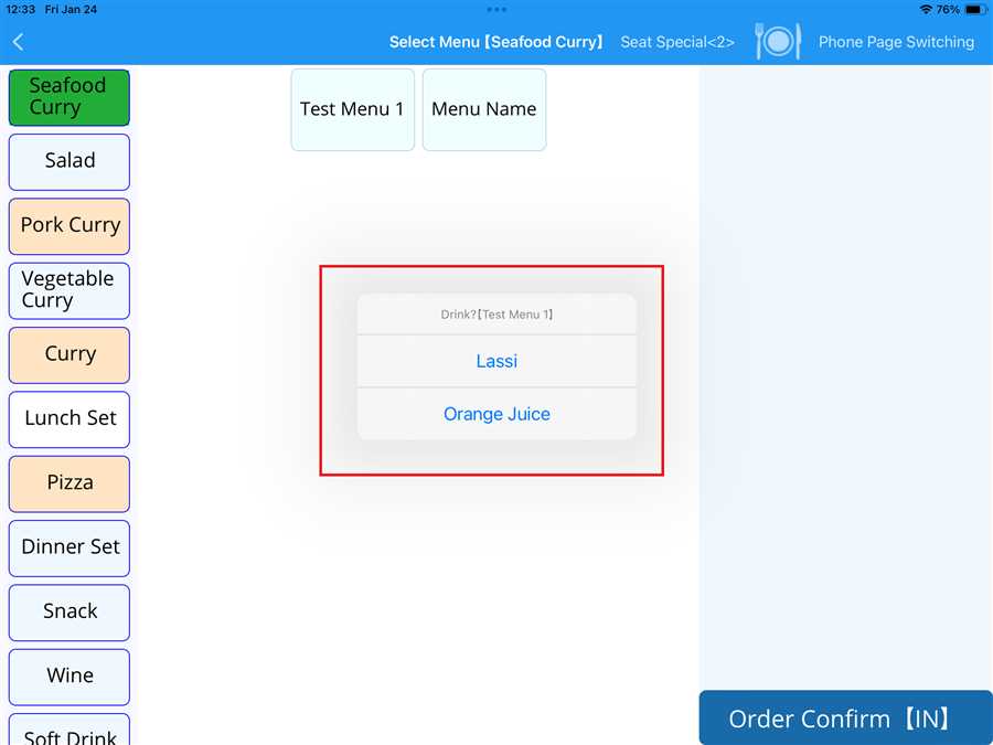 Now,user can select the ordered number of menu and its content and press Order Confirm [IN] to place the order.