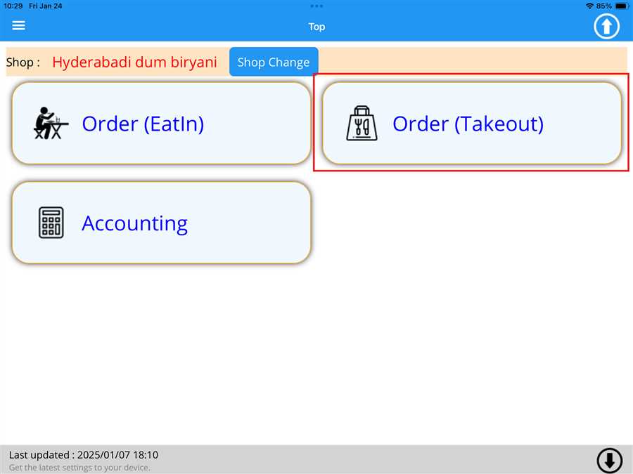 User can order eatin by pressing Order(Takeout) button on the screen as shown in picture below