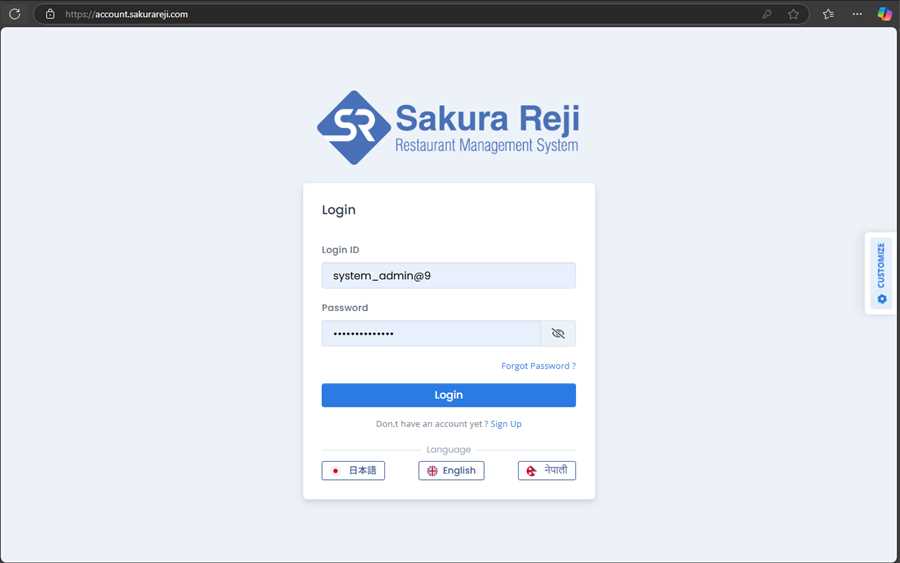 1. Open your preferred browser(Chrome, Firefox, Safari, etc.) and go to the URL "https://account.sakurareji.com".