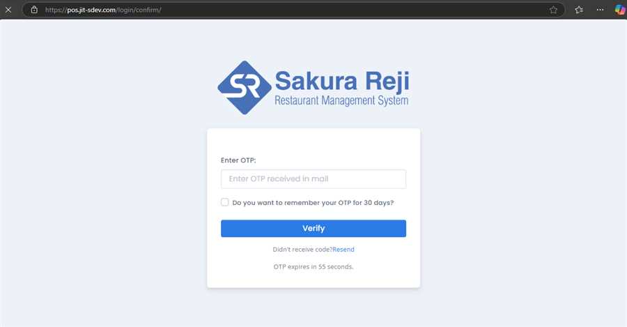 Enter the OTP code received in your email and then click on the verify button. You can get new code by clicking on the Resend link below the Verify button in case the code is expired.
