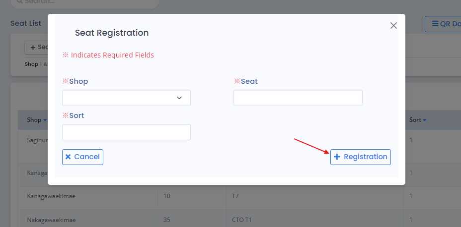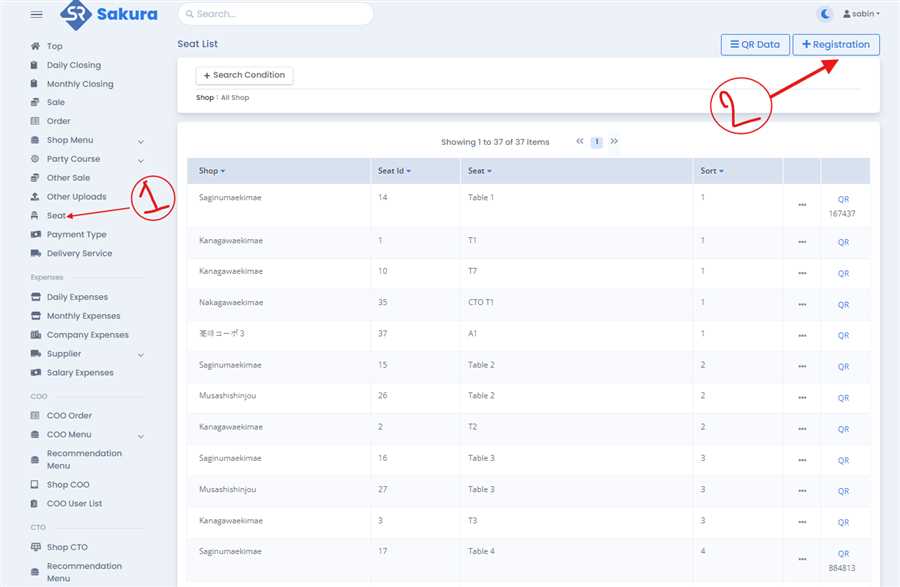 - This will take you to the seat list, where you can view all the seats registered for various shops.