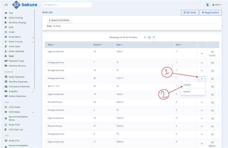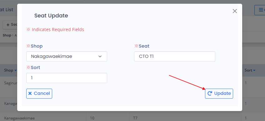 - Update Sort number to define the seat's sorting order in the list.