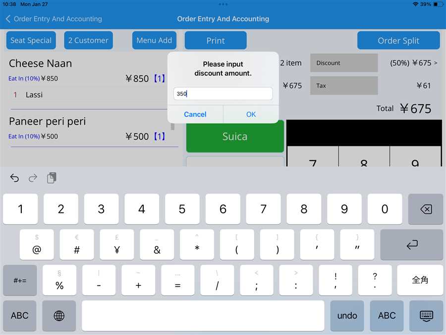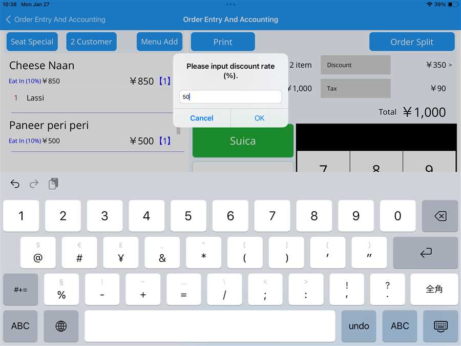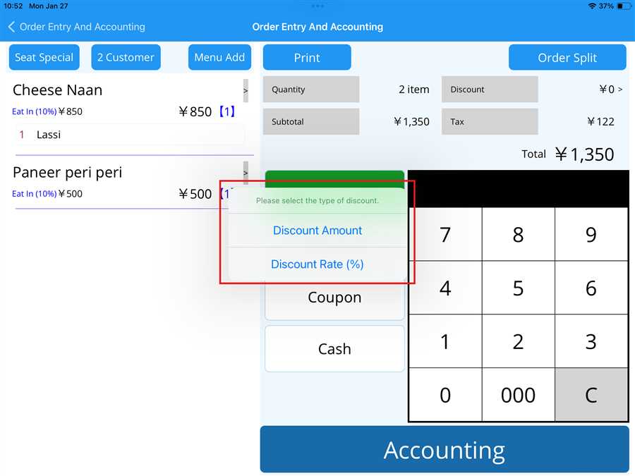 After selecting an option, the user can apply a discount either by pressing Discount Amount to apply a discount by a specific amount or by pressing Discount Rate (%) to apply a discount by percentage, as shown in the picture above.