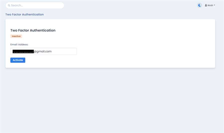 Then, the following form appears. As you can see in the image below, the Two Factor Authentication is 'Inactive' at the moment. You have to type in the mail address in the form where you want to receive the OTP