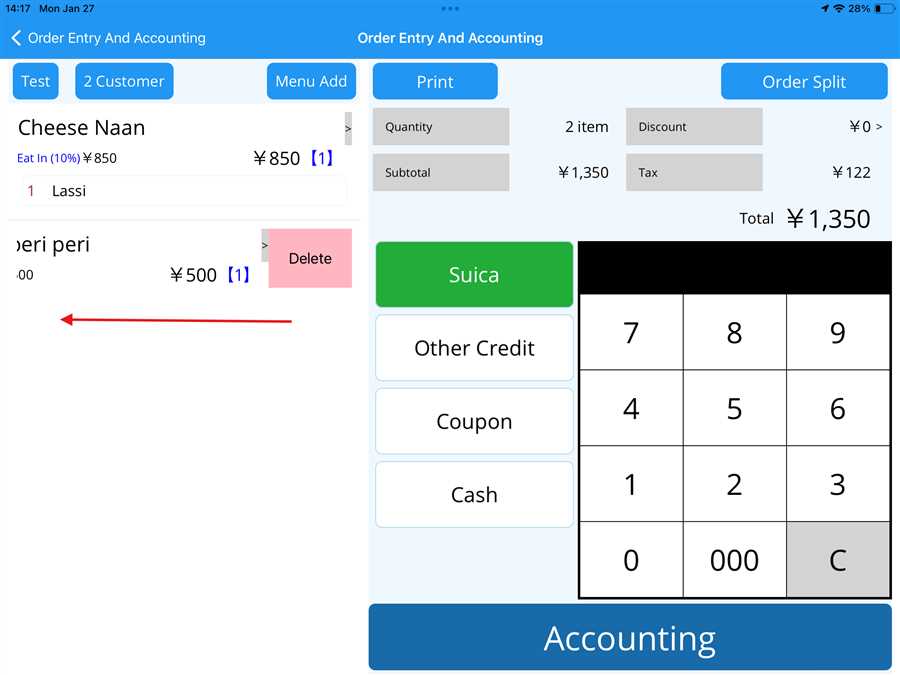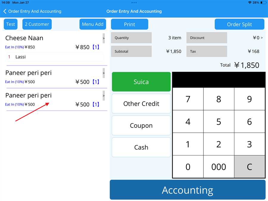 Adding menu during accounting