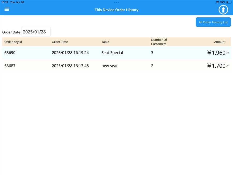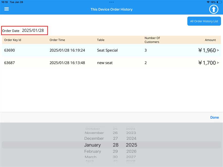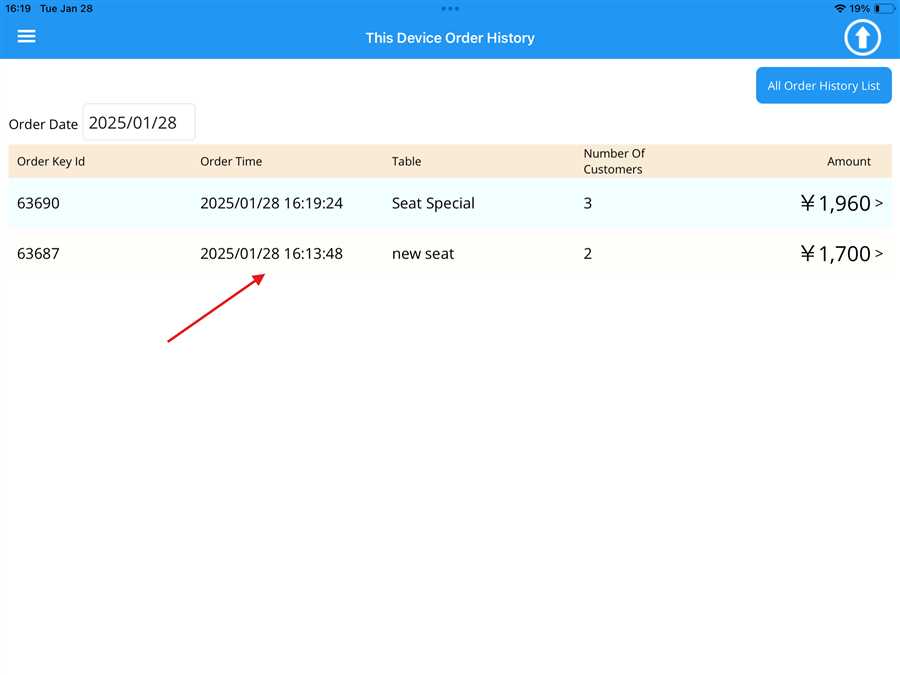 By pressing "All Order History List", the user is redirected to the POS web, where they can view the complete Order History through POS web.