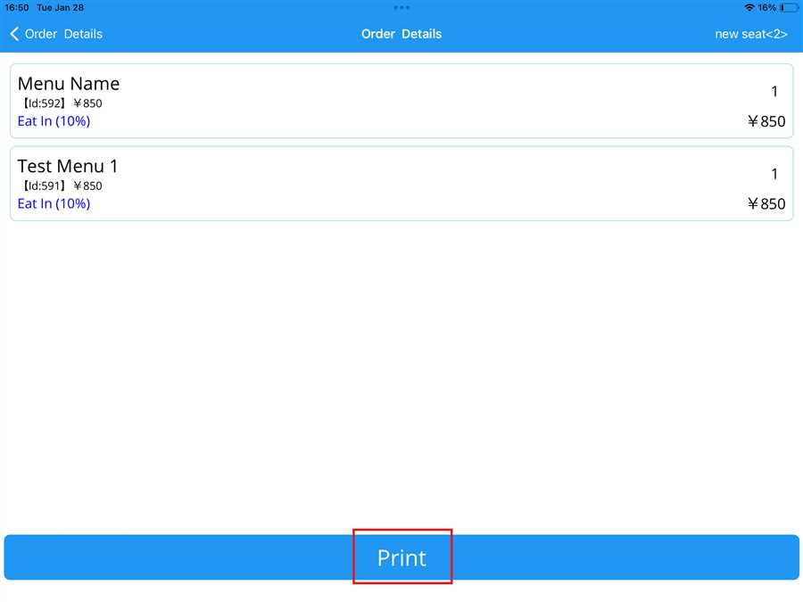 By clicking on an individual order, a page opens that contains the list of menu items in that order. The user can print the specific order by clicking on the print button shown in figure below:
