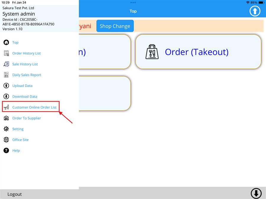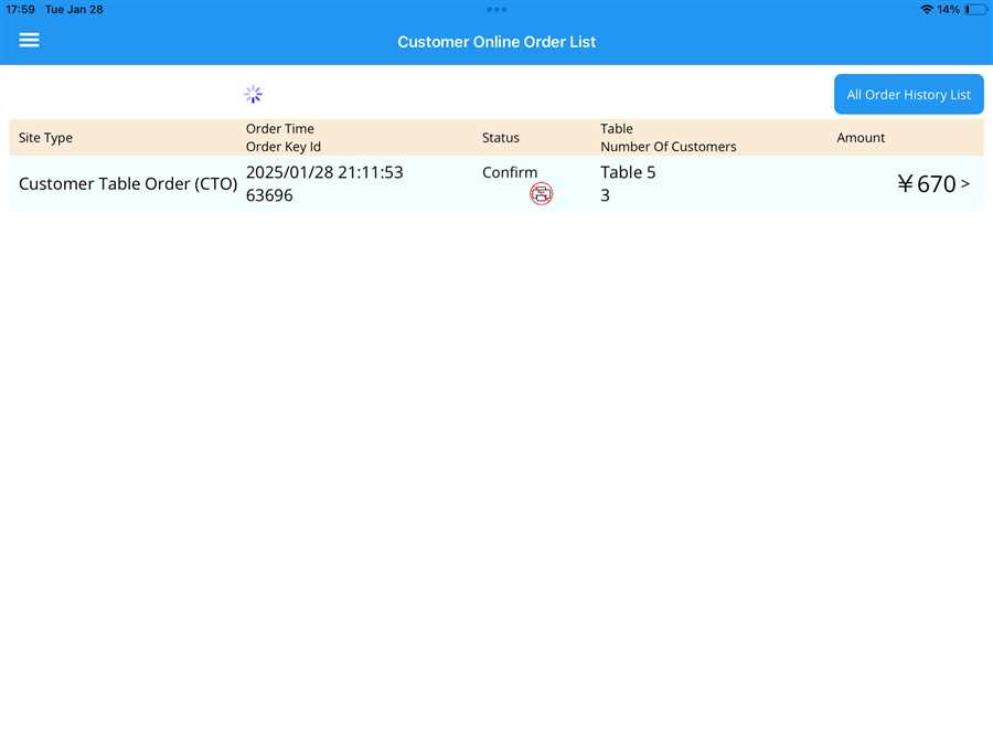 When a customer places an order from CTO or Ryoriten, the order appears on the list. The page automatically refreshes at regular intervals, updating the list with new orders. Additionally, the printer automatically prints the newly loaded orders.