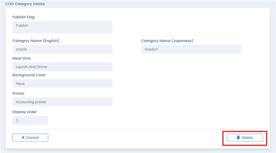 After this detail page opens up which contains all the information of the category. Now, user can delete the data by pressing delete button