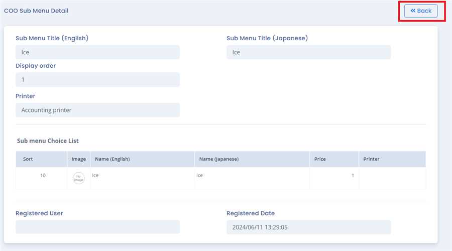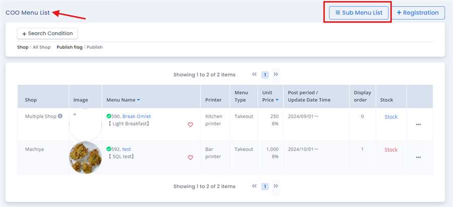 Sub Menu List button can be pressed to open a page which contains the page of list of sub menus.