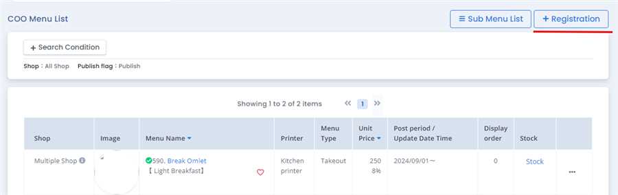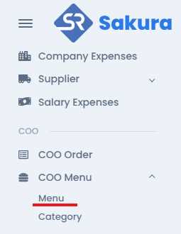 You will find menu at left side in COO Menu tab in COO section. Click on menu, then you will find the COO menu list with registered COO menu with their information.