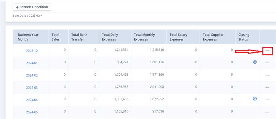 On the Monthly Closing List Page, Click options icon(...) on the row you want to execute Monthly Closing on.