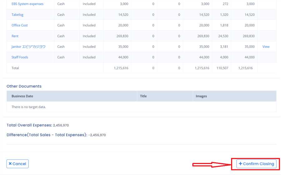 Navigate towards the bottom of the page and click on 'Confirm Closing' button to execute monthly closing.