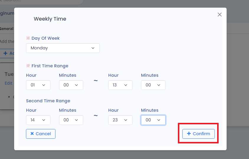 After pressing Add button a form opens up ,user can add required time information and save by pressing confirm button