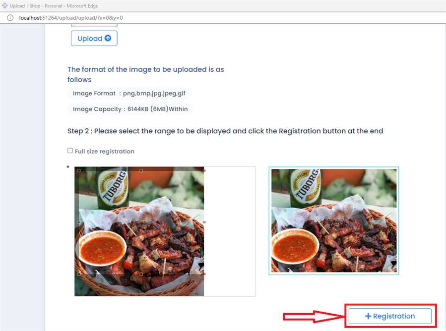 Crop the image according to your requirements and click 'Registration' Button.
