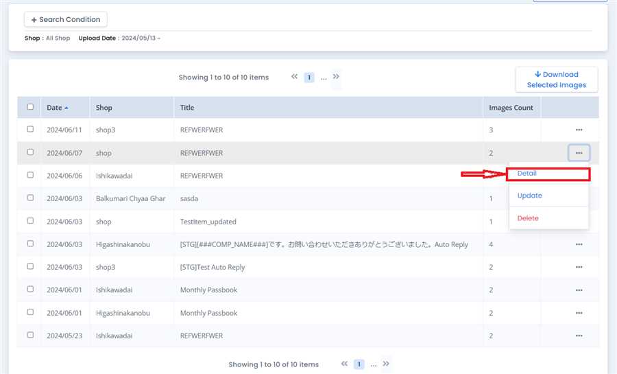 Click on the 'Detail' Button. This will open the detail page from which you can view uploaded images.