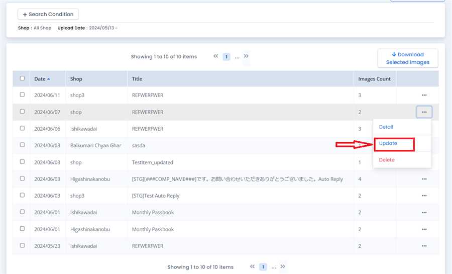Click the 'Update button' as shown in the image. This will open up the update form.