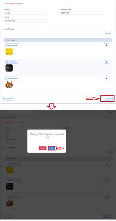 Update the form data as per requirements and click on 'Update' button. Click on 'OK' button in confirmation message box to finish.
