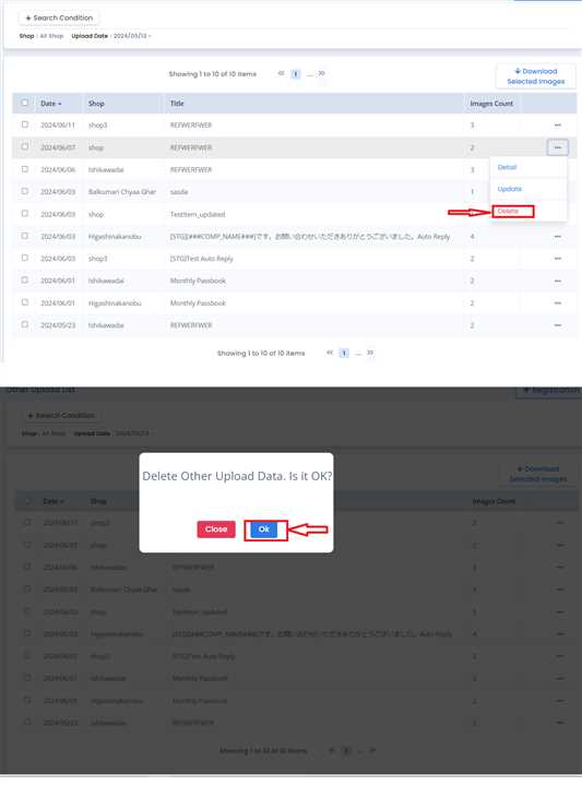 On Other Uploads page, determine which images you want to Delete by looking at the Title and Upload date. After that, click on options icon(...) on the row you want.