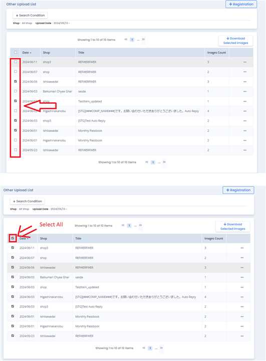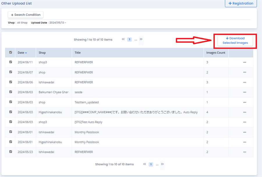 On Other Uploads page, determine which images you want to Download by looking at the Title and Upload date. After that, Tick the checkbox on rows you want to download. If you want to select all data click on the Checkbox of column as shown in image.