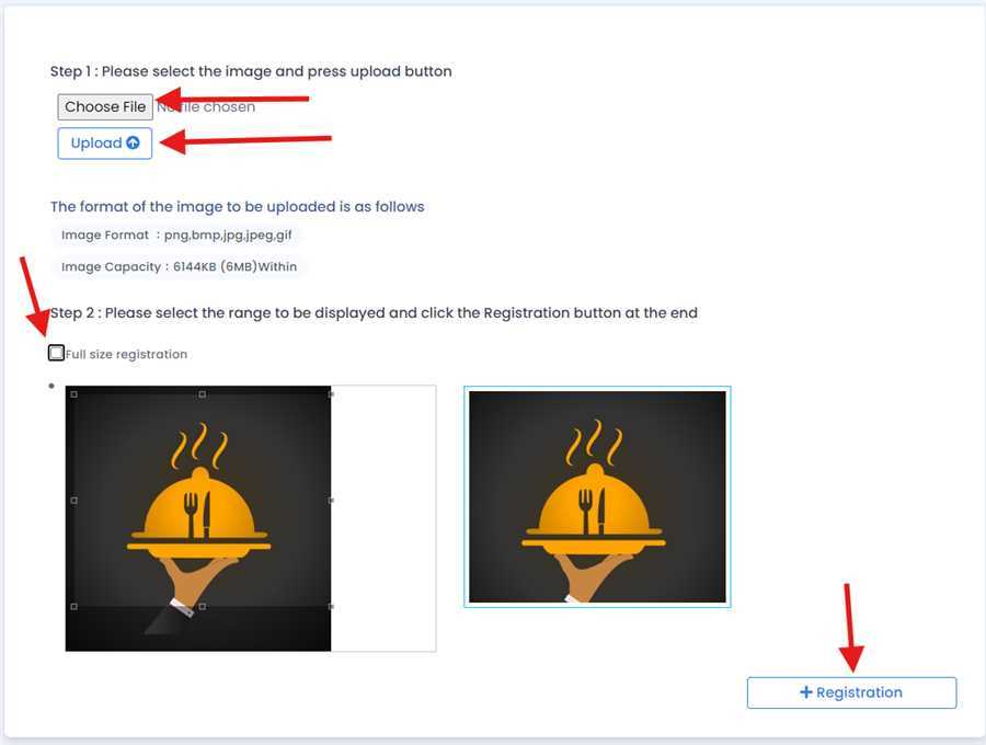 - After this Click on Registration Button while doing this the menu image for that menu is regisatered and Displayed in the form.