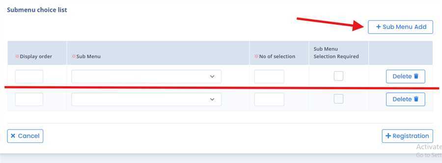 Submenu Choice List: If your menu contains submenu then you need to add a Submenu list according to the menu. There is a table which shows display order, Submenu Name, No of Selection and Sub menu selection Required. To add submenu follow the following steps:
