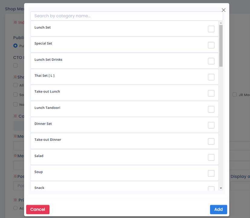 Select the categories according to your menu needs and Click on Add button to save it. On doing that the category will visible in category field of menu registartion form. This produce will add Categories of the menu