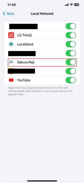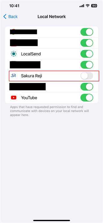 Look for the "Sakura Reji" app in the Local Network settings.Currently it should look like the image attached